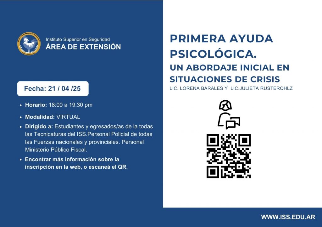 «Primera ayuda psicológica. Un abordaje inicial en situaciones de crisis». Extensión 2026